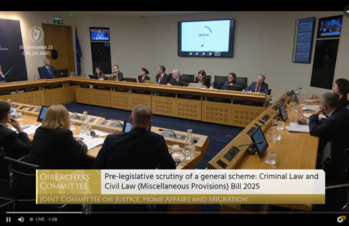 On 30 September 2025, the Joint Committee on Justice, Home Affairs and Migration met to examine the General Scheme of the Criminal Law and Civil Law (Miscellaneous Provisions) Bill 2025. IPRT's Executive Director, Saoirse Brady and Legal Policy and Public Affairs Manager, Niamh McCormack took part, providing evidence on key aspects of the Bill.